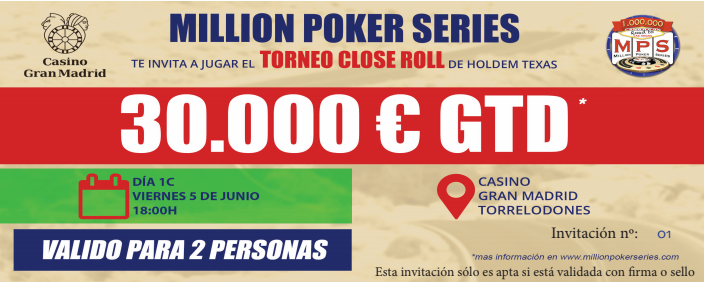 Es una partida similar a un “Free Roll” con la diferencia que en este torneo solo se puede entrar con invitación. Ante la gran afluencia que se espera, se recomienda ir con tiempo al Casino.
