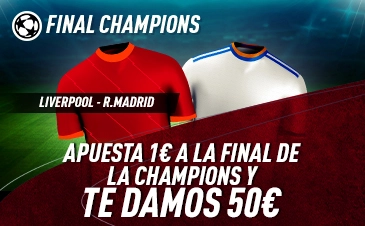 - Haz una o más apuestas por valor de 1€ al Liverpool-Real Madrid y recibe 50€