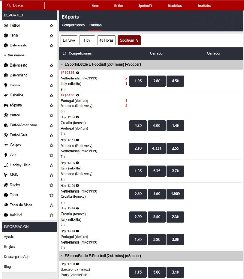 - Busca el evento o deporte en cuestión que se este jugando en vivo, o accede a Sportium TV a través del submenú.